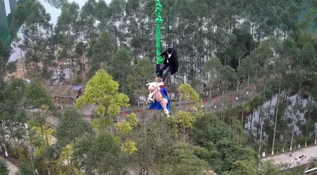 The incident occurred in Fuling District, China, where animal lovers slammed an entertainment park called Mexin Village of Wine for throwing a tied-up pig off their bungee jump as a part of their publicity stunt.