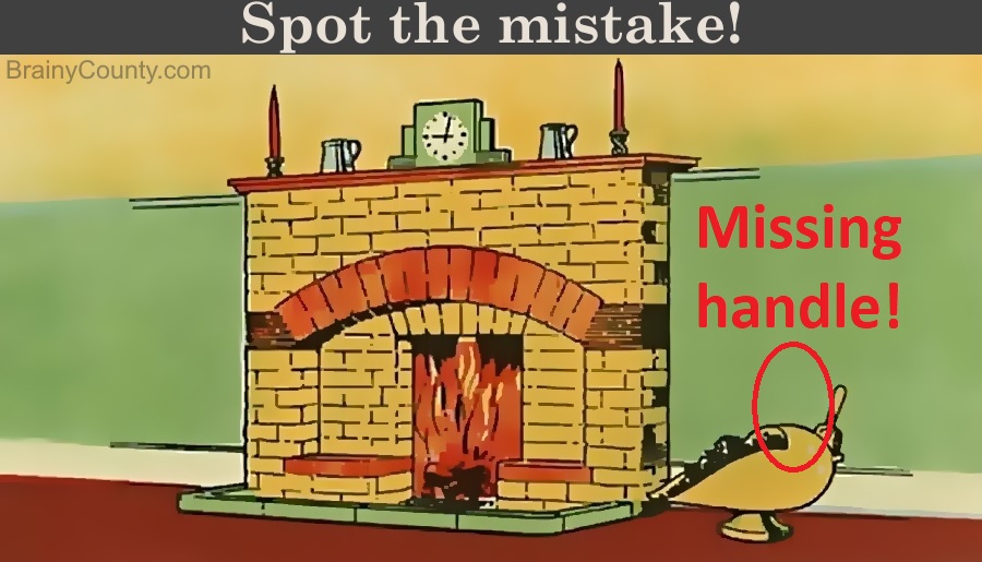 The error concerns the coal scuttle next to the hearth. As you can see, it doesn’t have a handle!