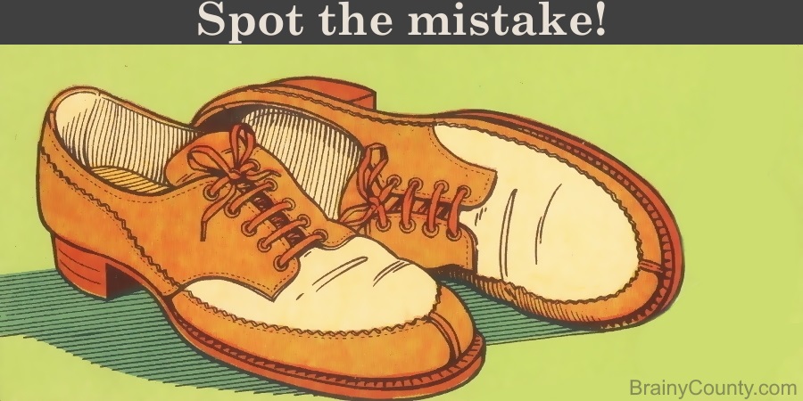 This time, you’re looking at a pair of brown shoes with an interesting design. Once again, there is a big error hiding somewhere in the picture.