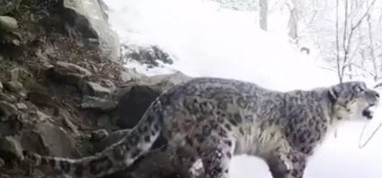 The footage of the endangered snow leopard was captured where he was calling out to the females in the wild.