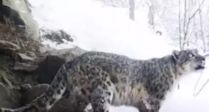 This footage was shared by TWLF (The White Lion Foundation) after the leopard in northern Pakistan’s Karakoram Mountain walked past remote specialist field cameras.