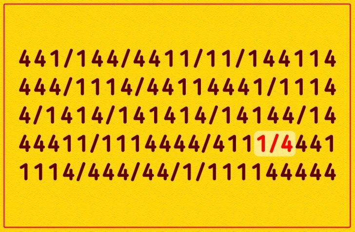 In this challenge, you are asked to spot the ‘1/4’ that is hiding somewhere in the sea of numbers 1 and 4.