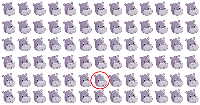 In this first graphic below, one of the hippo icons is different than the rest. Before you start looking for it, set your timer to 30 seconds and smash that start button.