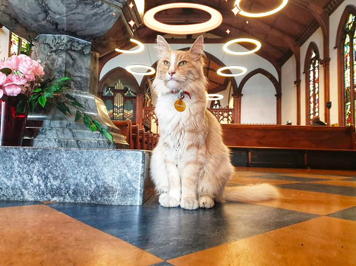 Mittens is granted access to go anywhere, from churches to strips clubs, no place is off-limits for this particular cat.
