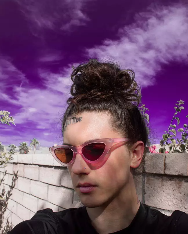 The artist and producer who prefers to be known as ‘The Opposite of Sadness’ or TOOS instead of his real name says the universe told him to get the bizarre tattoo at the time when he’s ‘tripping really hard.’