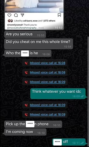 In screenshots of the pair’s conversation, Sarah’s ex is seen asking the student who the guy in the pictures is before attempting to call her.