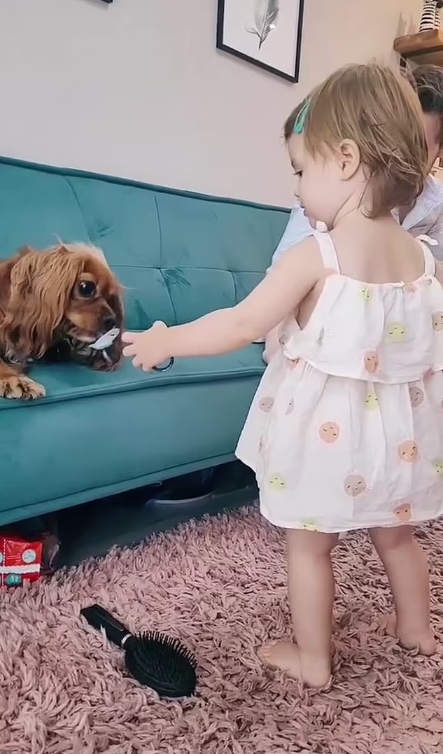 An 18-month-old girl and her family dog went viral after parents revealed the pair have been sharing toys and even pacifiers.