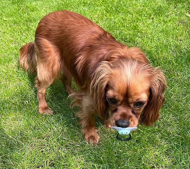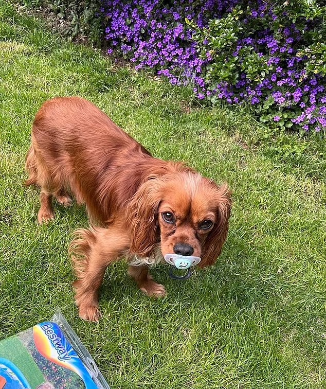 Thanks to the influence of his human sister, Rafa the Cavalier King Charles Spaniel now constantly roams their house and garden while sucking on pacifiers.