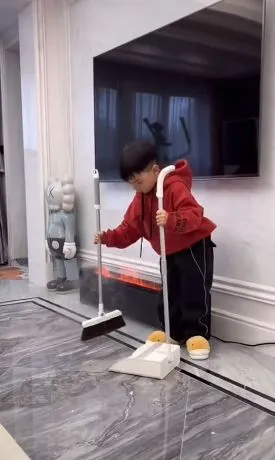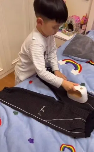 The 6-year-old boy then removed the dust from his clothes and put it on before washing his face and brushing his teeth.