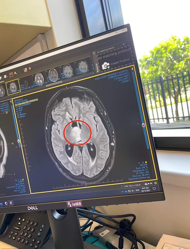 Dylan Tobin, 26, had been suffering from recurring headaches for months but his doctors had only put it down to tension.