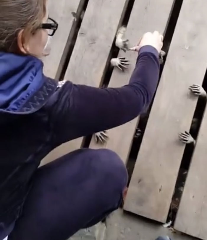 They got scared at first seeing the hands of the raccoons but later found out that the raccoons were hungry and were there just for food and not to harm anyone.