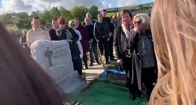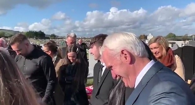 Grieving friends and family members were seen in tears when veteran Shay Bradley was placed into the soil in Kilmanagh, Leinster, Ireland.
