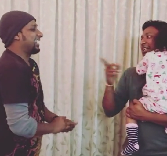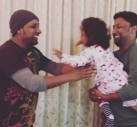 Now the little kid motions her heads in order to signal that she wants to held by Rahul, ditching Rohit.