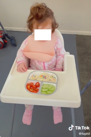 Sparking an outrage on TikTok, an anonymous user shared a video in which she was seen serving dinner with a rude word on it to her toddler, Emma.