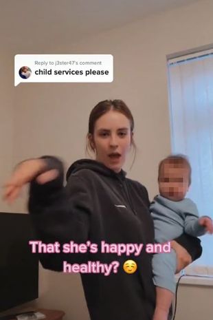 In another video, Tasj has hit back at someone who threatened to call child services, saying: “So they can say what? That she’s happy and healthy?”