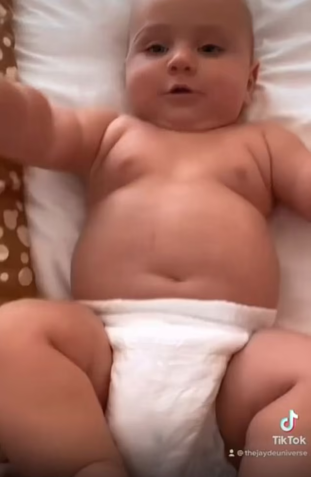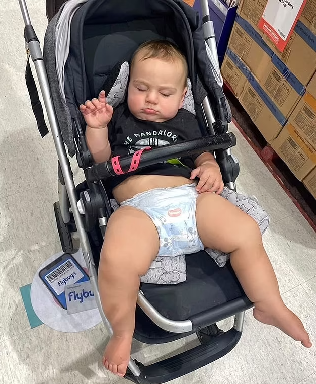 Only one year later, the tot’s weight has tripled, tipping the scales at 36lbs!