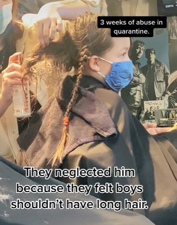 “My son was in quarantine with his grandparents for three weeks. They neglected him because they felt boys shouldn’t have long hair,” she said.