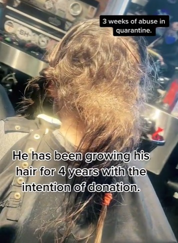 “He has been growing his hair for four years with the intention of donation. After 12 hours of dematting, he agreed that it was time to cut it.