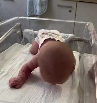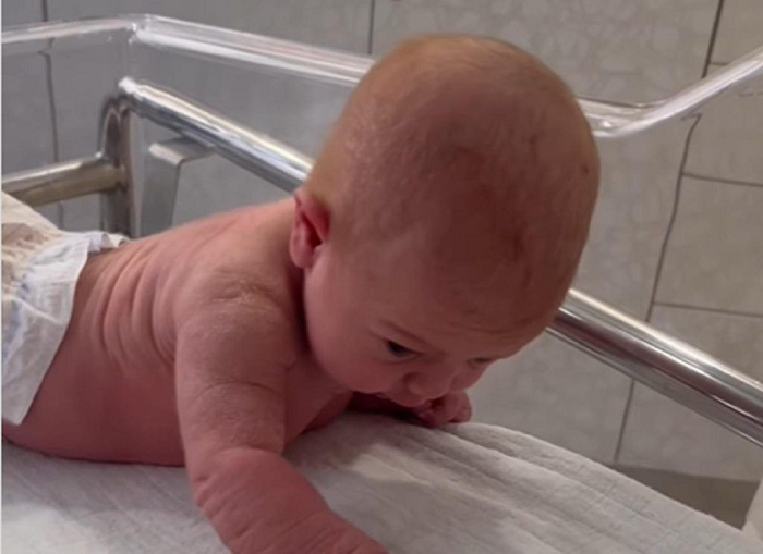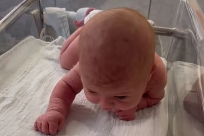 A 3-day-old newborn left his mother shocked after she started lifting her head and crawling in front of her.