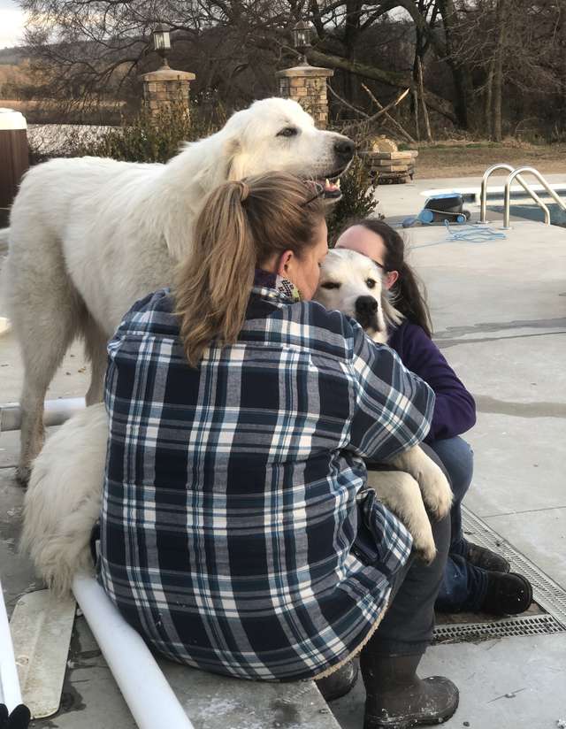 “She was wet, she was cold and shaking. Ona just grabbed her up and started pulling the sheetrock out of her fur, and just squeezed her and hugged her,” Julia added.