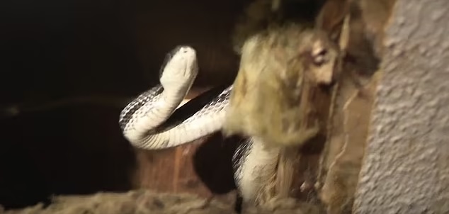 A family was shocked to discover that several large snakes had been living in their home after the ceiling collapsed.