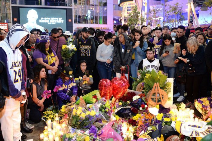 Fans came together outside the Staples Center for a touching display of solidarity amid tragedy. The Staples Center was host to the 2020 Grammy Awards on Sunday night, and the place was more crowded as the music awards show brought celebrities and spectators along with Bryant mourners.