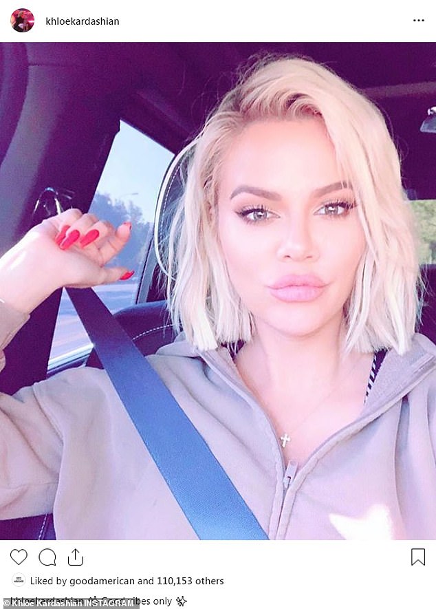 Khloe Kardashian flaunts her thick lips in her latest good vibes selfie which she posted on her Instagram account three days ago.