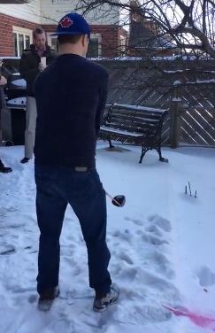 Watch the video to see how cool their idea was to reveal the gender of their twin babies. The video starts with the mom-to-be holding a golf club in their snow-covered backyard.