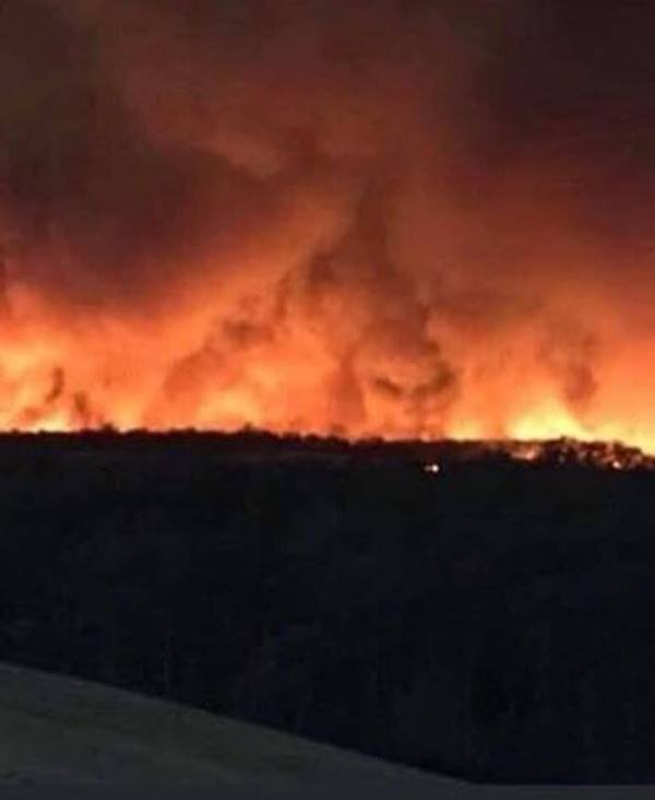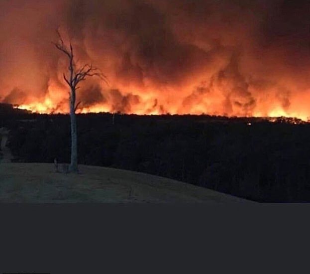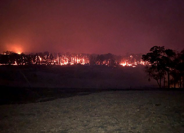 The scene was photographed by his friend as blazes ravage the region, including his farm.