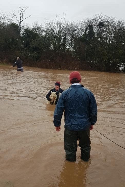 Hundreds of people were told to evacuate their homes but Faye from Derbyshire, UK, didn’t want to leave her animals behind, especially when she saw them struggling in the floodwaters.