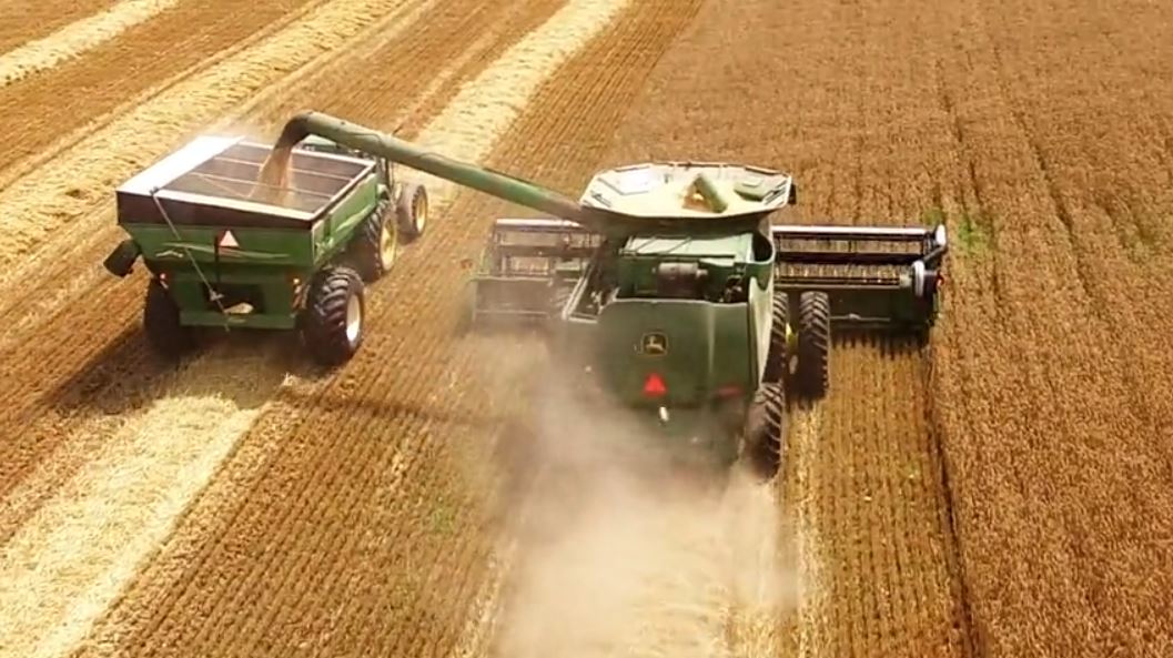 To show you the same, here is a video of a massive farming machine working on a farm along with tractors.