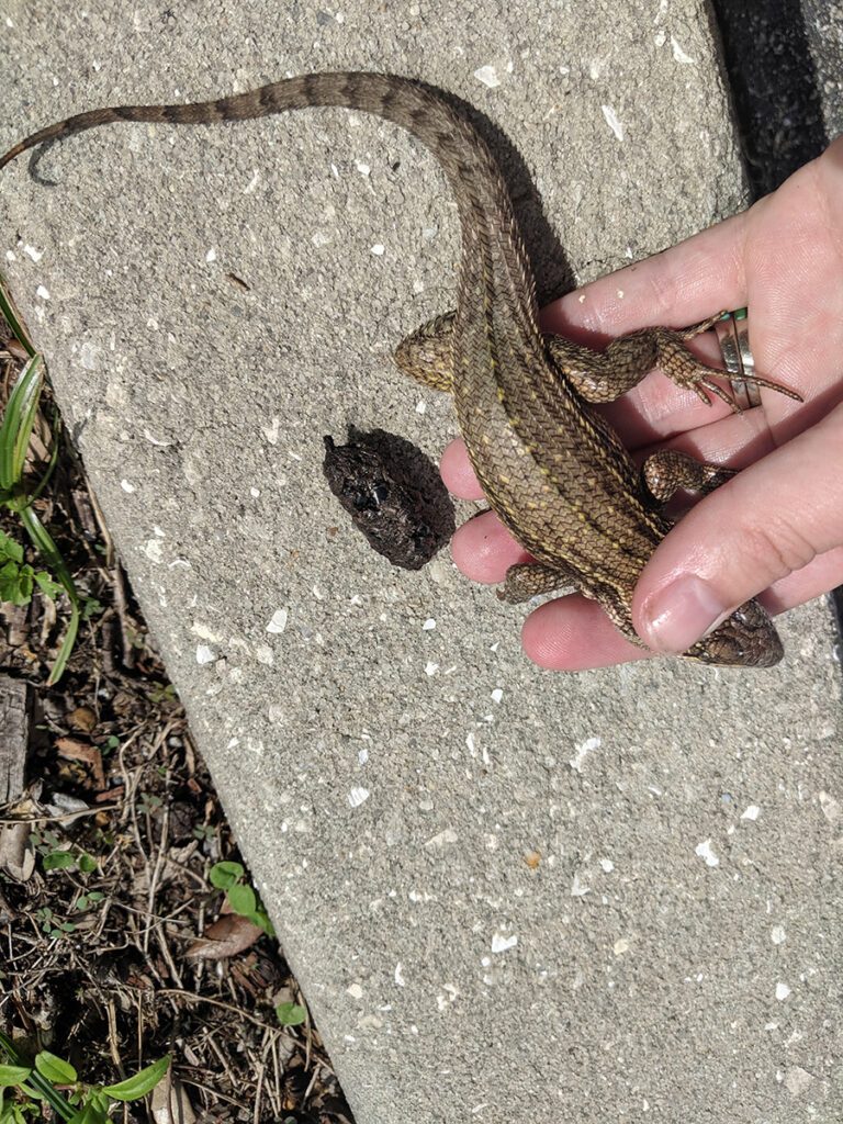 This female was identified as a curly-tailed lizard, which fairly common around Florida. Although they are originally from the Caribbeans, it was introduced to the state in the 1940s for pest control purposes. They are well-known for their voracious appetites, which was on clear display with this female.