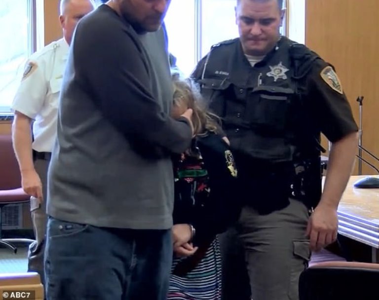 The 10-year-old is charged with first-degree intentional homicide. She cried while she was taken into a courtroom in handcuffs.