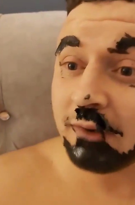 John Meechan, 30, asked his partner to help him apply some of her blackhead face mask mix. But when Tracy Dougall refused, the father-of-two decided to do it himself.