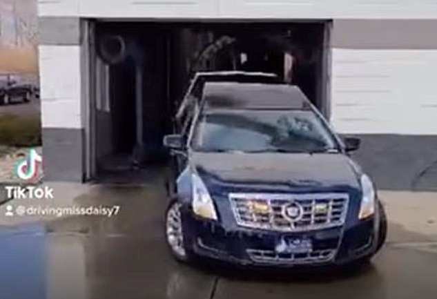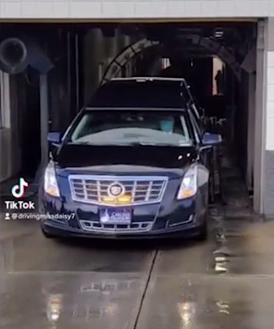 During the procession, the hearse drove through the car wash and got thoroughly washed while the song ‘Car Wash’ was playing.