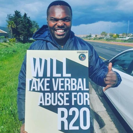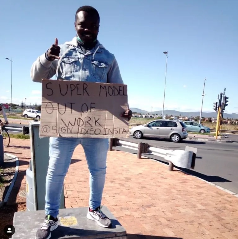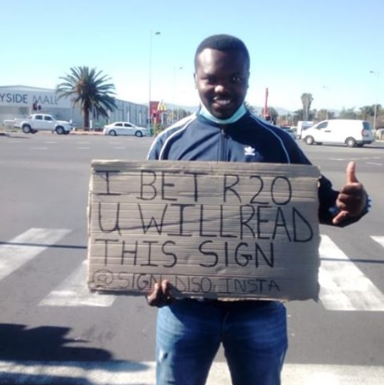 In order to provide for his family throughout the pandemic, the South Africa-based man came up with the idea to make people laugh with the help of amusing signs.