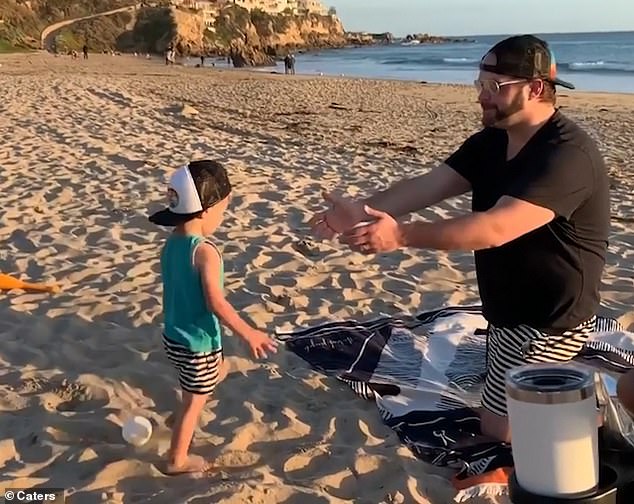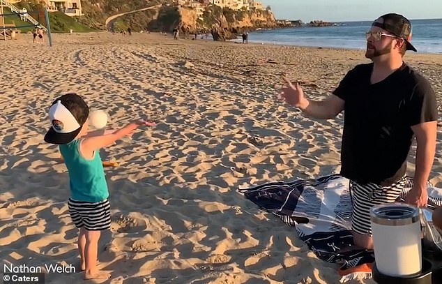 Nathan Welch was teaching how to catch a ball to his two-year-old son Levi in Corona Del Mar, California.