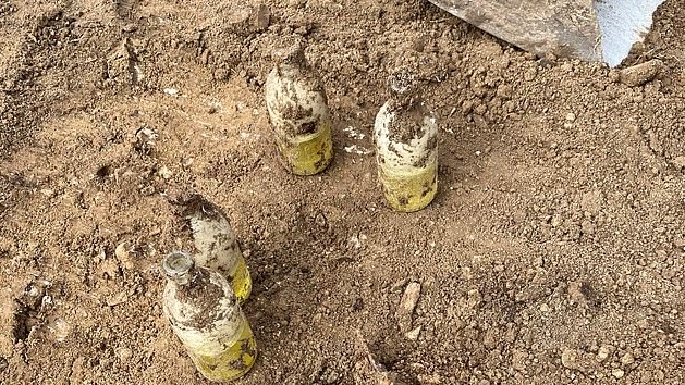 A father-of-three was shocked when the ‘milk bottles’ he found buried in his garden were actually live grenades from World War II.