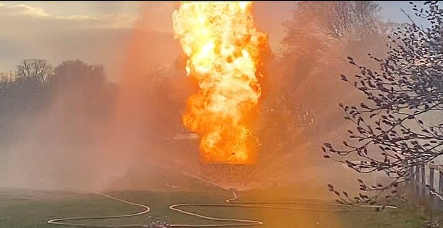 The active bombs were then put in a sand-lined skip and detonated behind a wall of water the firefighters created.