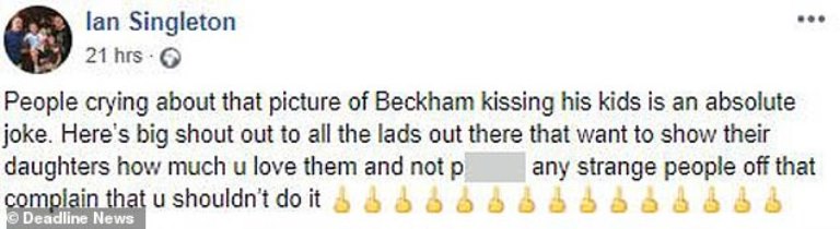 Ian Singleton wanted to give his support to former footballer and celebrity David Beckham after he was slammed for sharing a photo on his Instagram kissing his own daughter.