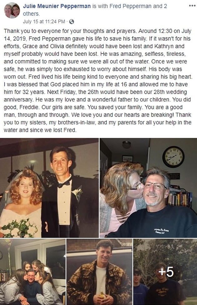 “My husband and I weren’t in the water, our older children got out there first and then we got out there,” Julie, Fred’s wife, said in a statement to Daily Mail.