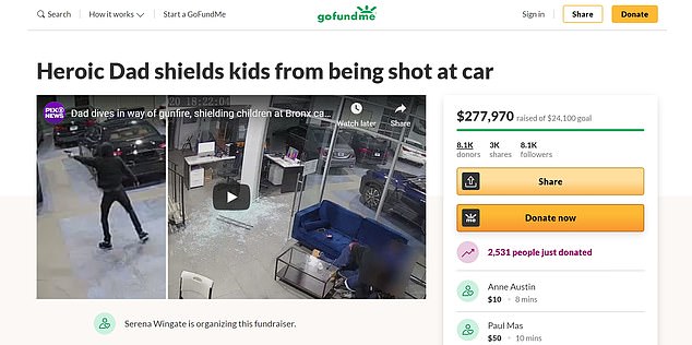 The loving father who was shot while shielding his three children from gunfire has received over $270,000 from kindhearted people.