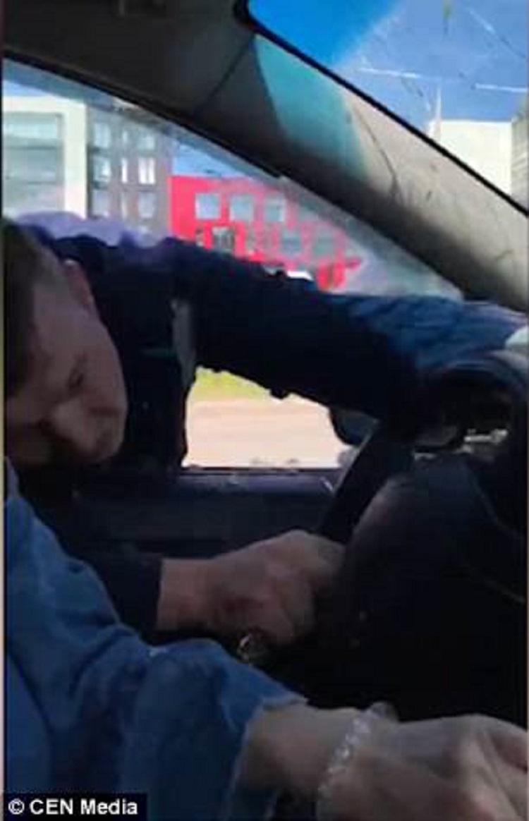 The ex-wife’s friend happened to be sitting in the passenger’s seat when the incident happened and managed to film what occurred. The altercation is believed to have happened in Naberezhnye Chelny, Republic of Tatarstan, in central Russia.