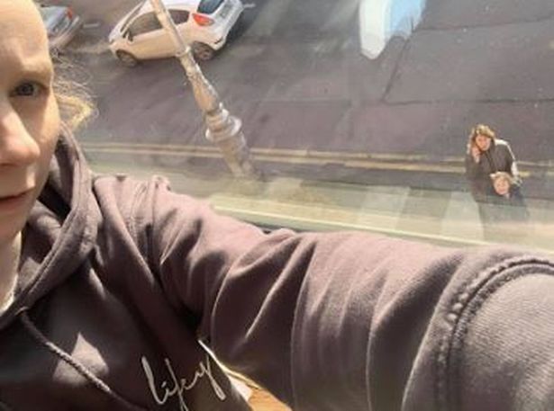 Her seven-year-old daughter Freya can be seen waving at her mother from the street in the heartbreaking picture.