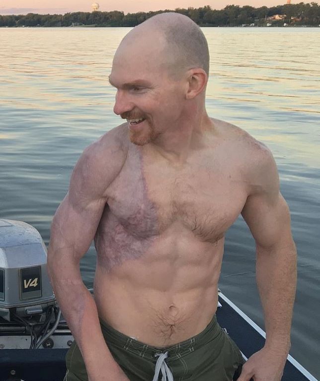 44-year-old Chris Gordon had to have most of his skin removed after he woke up with a softball-sized lump on his elbow.