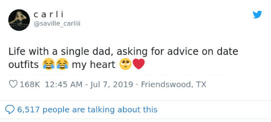 She wrote a caption saying “life with a single dad who is asking outfit advice from his young daughter. ‘My heart’.”