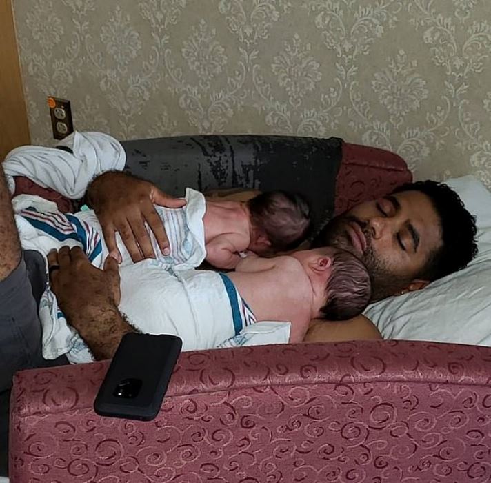 Facebook photos show the father as a devoted family man. One picture shows him peacefully sleeping with the twins lying on his chest.