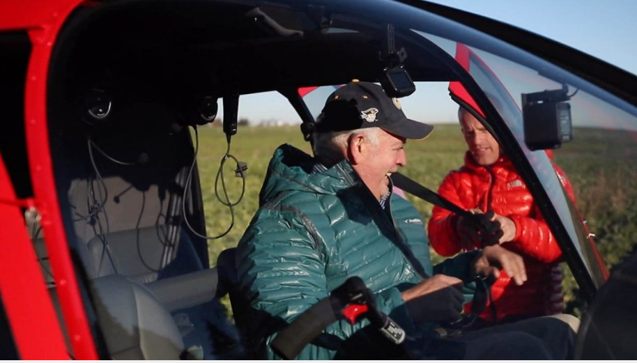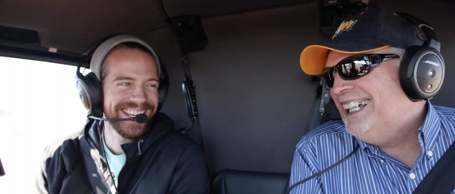 With his dad not being able to climb the mountain now, he decided to give his dad a helicopter ride over the same mountain that they climbed two decades ago.