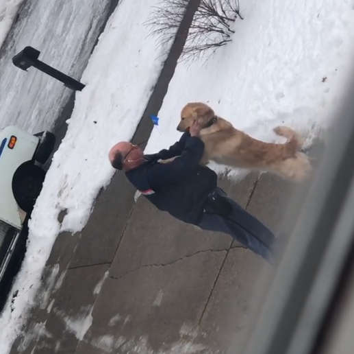 This dog from Grand Rapids, Michigan, shares a beautiful relationship with his favorite mailman. The dog loves the man so much that he waits on the driveway every day to get a hug and scratch from his mailman friend.