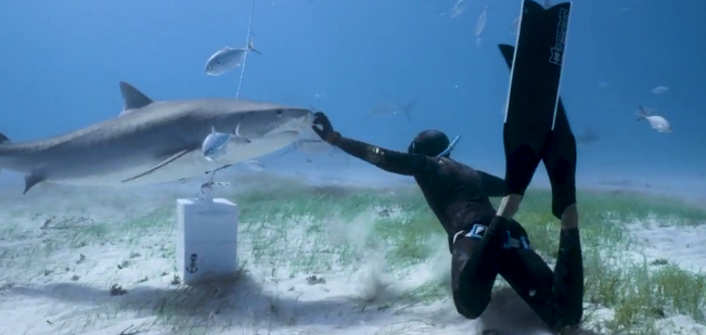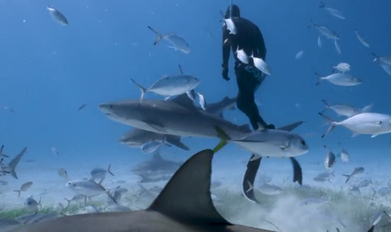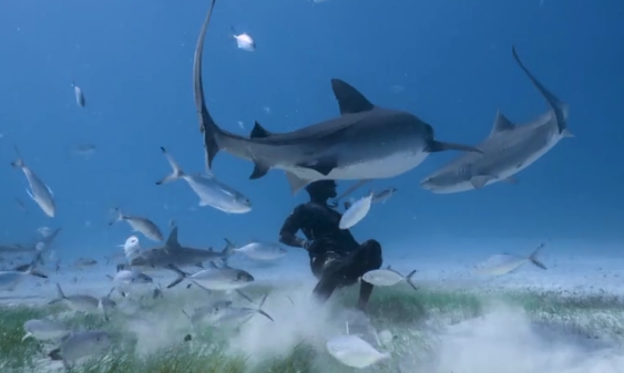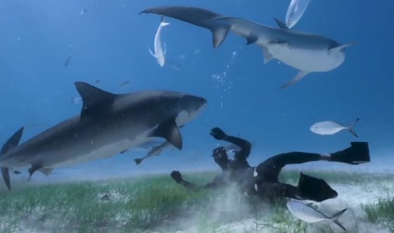 Here is a video of a fearless diver that dances in the middle of the ocean with not just one but two tiger sharks around him that could eat him in a second but nothing like that happened.